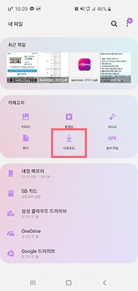휴대폰 내 ‘다운로드’앱 실행 → 스미싱 문자메시지 누른 후 설치된 ‘.apk’로 끝나는 파일 삭제