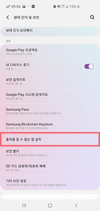 2) 미확인 앱이 함부로 설치되지 않도록 스마트폰의 보안 설정 강화